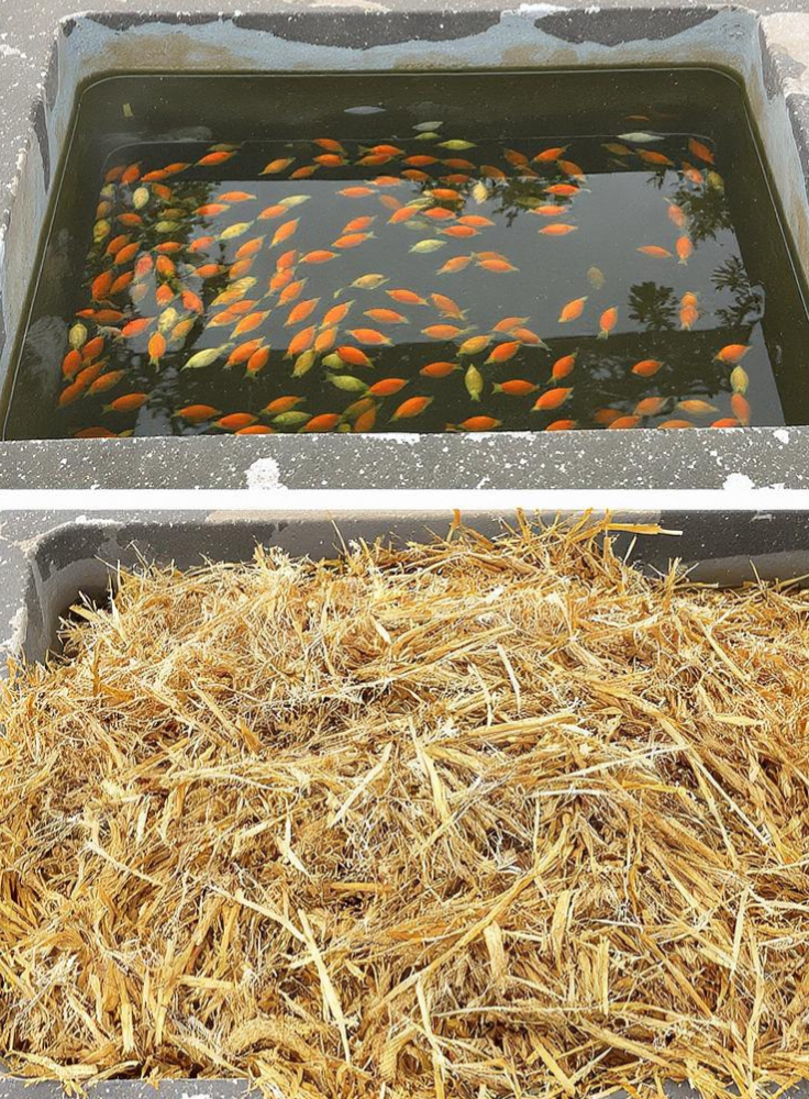 Once the animals go into our finishing program they are not given any antibiotics and are naturally dewormed with diatomaceous earth. Unlike many commercial feedlots which mix a ration in order to force cattle to eat low quality ingredients, we provide clean dry hay separately from feed and clean feed bunks daily. We use only well water in our finishing program and use goldfish to maintain the cleanliness of the troughs. No chlorine, fluoride or any other chemical.